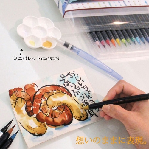 本格毛筆の描き味と美しい日本の伝統色にこだわった「カラー筆ペン」15色に「水筆ペン」がついた水彩セット!手軽に自由に水彩画を楽しめます。 |