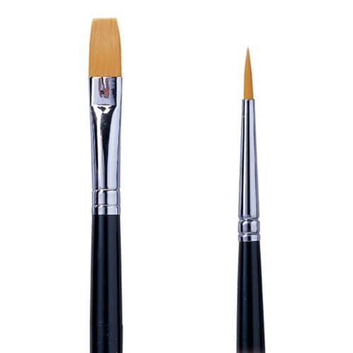 高品質のポリエステル毛を使用した画筆。水彩絵の具、アクリル絵の具、ラッカーなど、様々な絵の具に使用できます。絵の具の含み、弾力性、まとまりに優れています。 |