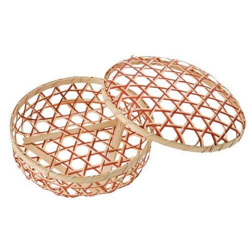 竹かご 2色丸篭被せフタ付BR アサヒグリーン×100