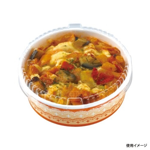 オーブン220℃加熱可能な紙容器で熱を加えた調理をお楽しみください。耐油耐水仕様なので煮込み惣菜にも。蓋は別売りです。※オーブン加熱調理時にはPP蓋を外してご使用ください。 |