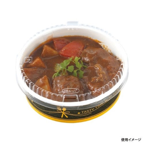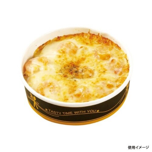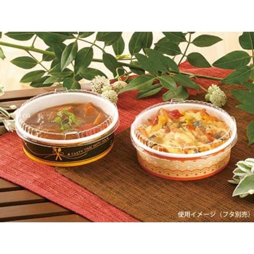 オーブン220℃加熱可能な紙容器で熱を加えた調理をお楽しみください。耐油・耐水仕様なので煮込み惣菜にも。蓋は別売りです。※オーブン加熱調理時には、PP蓋を外してご使用ください。 |