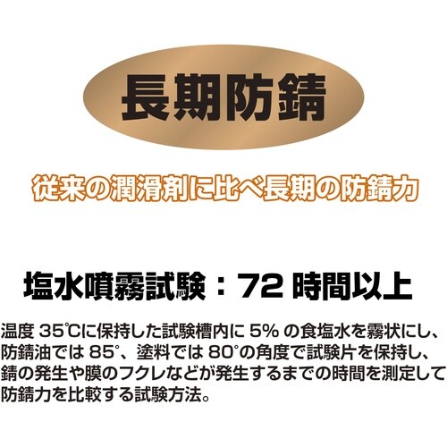 設備用防錆浸透油無臭タイプ、2wayノズル採用、逆さ吹き可能。防錆効果を上げた処方で、他の浸透油と比べ長期防錆が可能。錆びついて固着したボルト、ナット等に塗布すれば浸透して動きやすくなります。 |