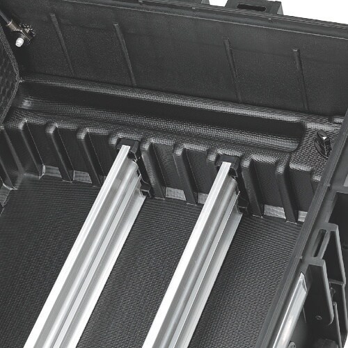 防塵、密閉、防水性に優れています。書類用仕切りのツールパネル付です。ロック可能なボトムトレイは、アルミニウム仕切りシステムで個別に分割可能です。人間工学に配慮したコンフォートハンドルです。 |