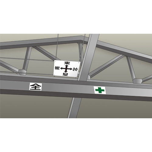 天井に取り付けてクレーン作業を補助するスチール製方角表示板です。クレーン操作の補助に。 |