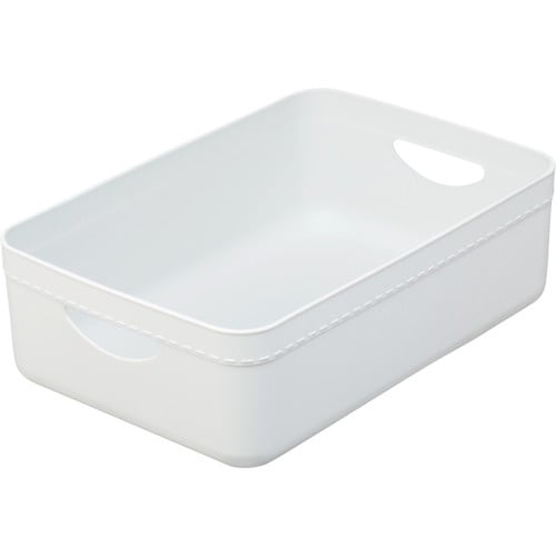 柔らかめPEを使用し、布のような柔らかいソフトな触感に仕立てました。布地を連想させる粗目のシボを採用し、マットな印象でナチュラルインテリアともマッチします。棚の小物整理に便利です。 |