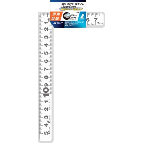 白と黒のコントラスト見やすい目盛です。角、竿ともに薄く平たくケガキやすいです。焼き入れ加工により強度と適度な弾性を持たせています。寸法測定、材料への墨付け、ケガキ作業に。 |