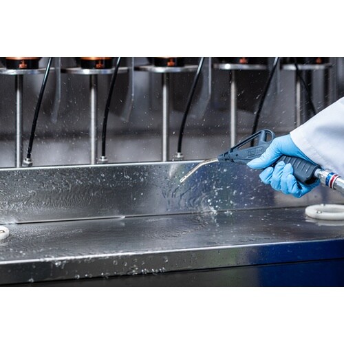 食品グレードプラスチック製エアブローガンのため飲料/食品製造工程で安心してご使用いただけます。ブローガンの構成部品は全て金属探知機やX線検査システムで検出可能です。大流量のため効果的に作業が行えます。 |