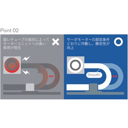 これまでのポリウレタンチューブの柔軟性をさらに向上させました。ウレタンチューブUSシリーズより柔軟性に優れUFシリーズと同等の最高使用圧力でご使用できます。 |