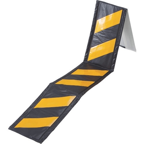 トラ柄と反射材が事前の注意喚起を促し、追突時にはクッションが衝撃を緩和します。裏面シートを密閉させないことで、熱による膨張を防止しています。ガレージなどの壁面や支柱に。 |
