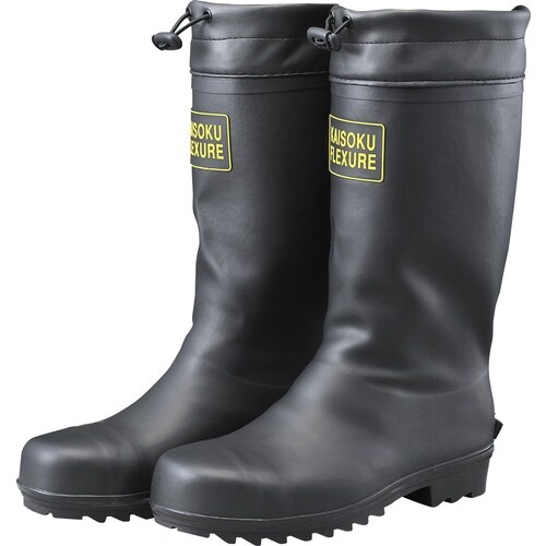 衝撃的な柔らかさと、足首の自由感覚で、狭い場所やぬかるんだ現場でも自由自在です。つま先に鉄芯が入っています。履き口はカフス付で汚れをシャットアウトします。 |