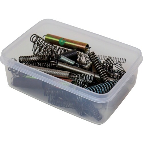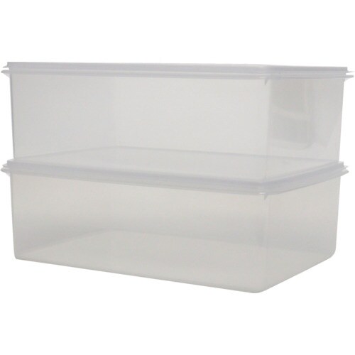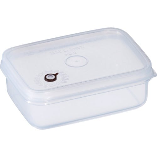 留具やパッキンを使わない簡易密閉容器です。フタには便利な日付メモリー付です。半透明なので中身が何か分かります。 |