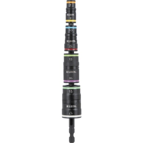 1本で両頭ビット、ソケット8種類の機能があります。シャフトとソケットは耐衝撃性があり、高負荷用途向けに設計されています。サイズで色分けされているため簡単にサイズ確認が出来ます。六角シャフト。 |