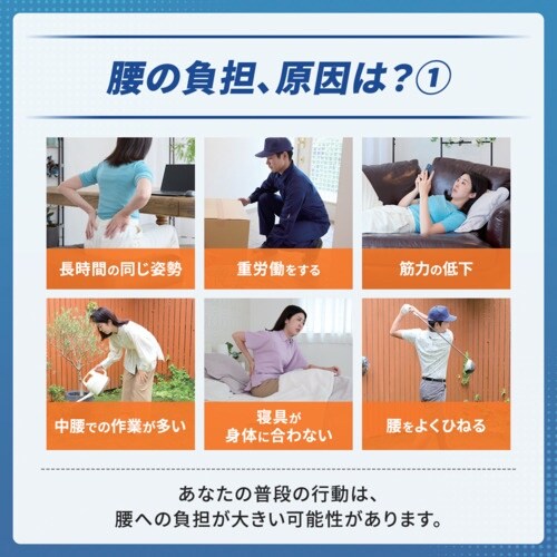 前合わせ部と背当て部の両方に硬質メッシュ生地を使用しています。背中側だけでなく腹部側からもしかりホールドし、腰への負担を軽減します。S字軽量ステー(支柱)で腰が反りすぎないように抑制します。 |