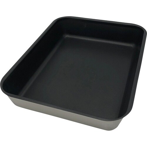 内面にフッ素コーティングを施していますので、非粘着性・耐薬品性・耐蝕性・耐摩耗性に優れています。縁は長めで持ちやすく、ゴミが溜まりにくいフラットタイプです。 |