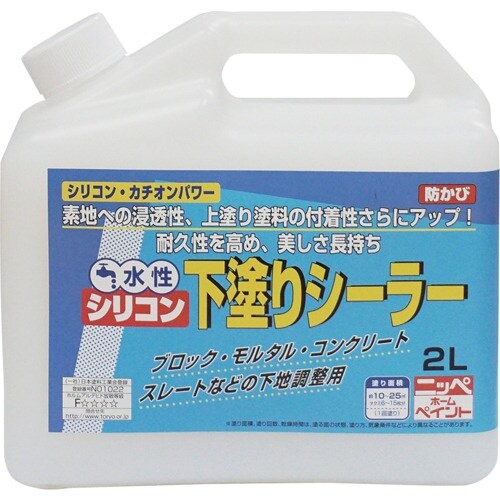 カチオンタイプなので旧塗膜や素地面と上塗り塗料との付着性を強力に高めます。浸透性に優れ、シリコンのはたらきで風化した素地面を強固にし、上塗り塗料の耐久性をアップします。防かび効果があります。 |