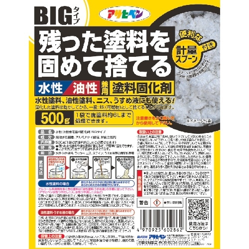 残った水性・油性塗料やハケを洗浄した水やうすめ液に混ぜるだけで簡単に固化できます。固化した塗料は、一般ごみ(可燃物)として捨てられます。 |