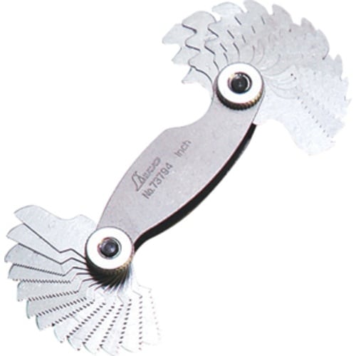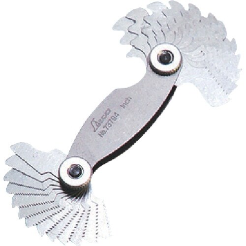 リーフに1インチ当たりの山数を表示しています。一般のネジのピッチの測定用です。 |