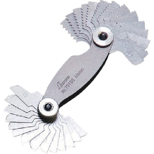 リーフに山と山のピッチを表示しています。一般的なネジのピッチ測定に。ミリ用。 |