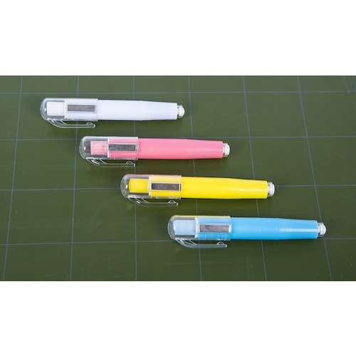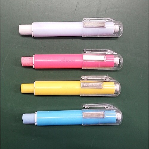 折れや水濡れからチョークを保護します。透明キャップなので、一目でチョークの色が分かります。キャップはマグネット付きで、スチール黒板などに取付け可能です。ノック式なのでチョークの出し入れが簡単です。 |