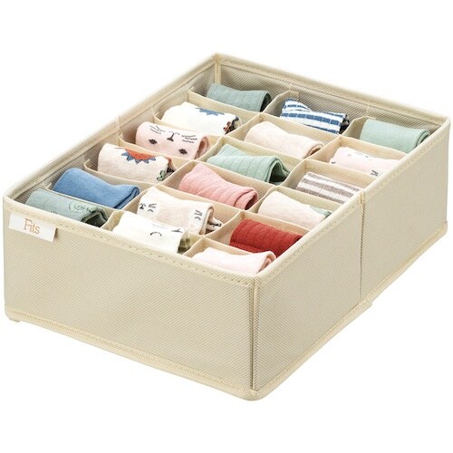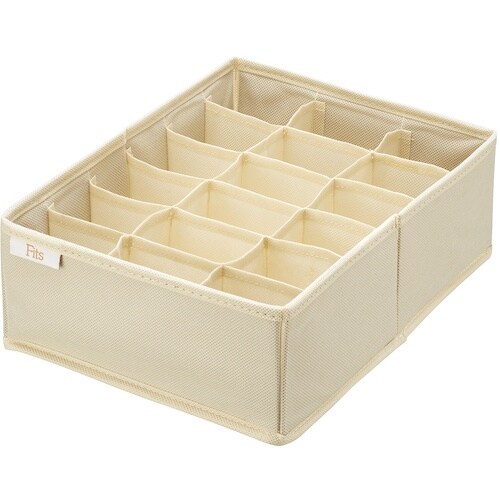衣類引き出し内を整理整頓する為の布製ボックスです。靴下やハンカチ、子供用グッズ(スタイやよだれカバー)など小物の整理におすすめです。フィッツケースシリーズを仕切るのに便利です。収納用品として。