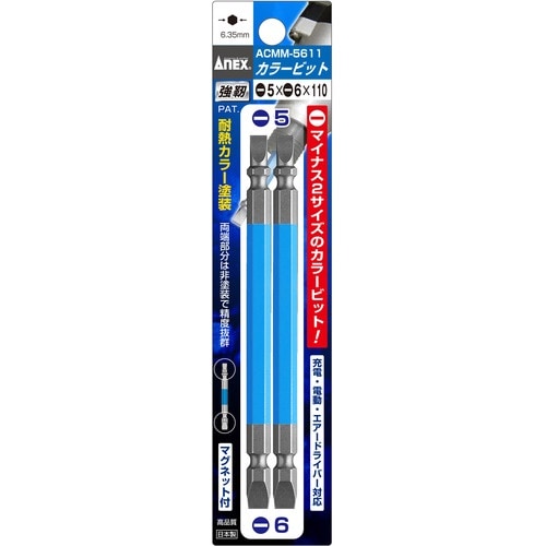 アネックスツール アネックス 両頭ドライバービット カラー2本組 刃先−5×−6×全長110mm A001-4499