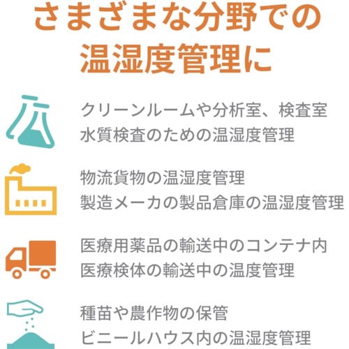 理化学・分析分野に。医療検体、医薬品に。食品衛生、HACCPに。農業・園芸、畜産分野に。建設・工事分野に。物流倉庫、製造品倉庫に。美術館、博物館に。住環境、電気設備に。 |