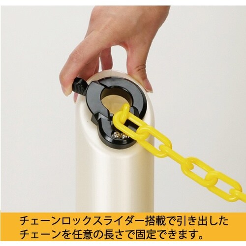 本体ポールには8.5mのプラチェーンを内蔵しています。注水ウエイトは安定感があり、取手付で移動も簡単です。チェーンロックスライダーでチェーン長さを任意の長さで固定できます。
