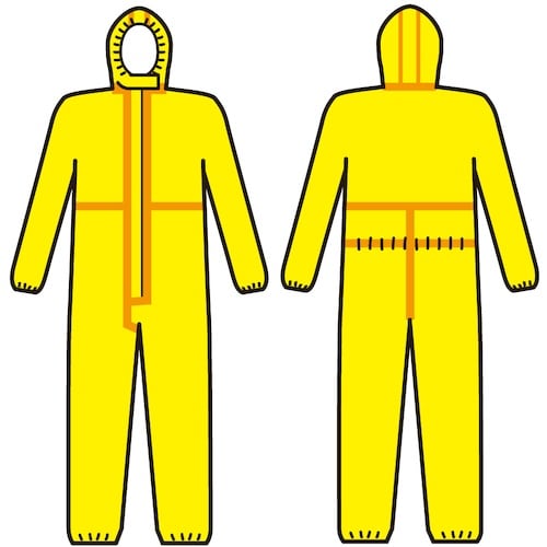 多くの無機化学薬品に対する透過耐性があります。JIS T 8115適合品です。タイプ3.4.5.6(液体、スプレー、微粒子、ミスト)感染性物質に対する防護性能があります。使い捨てタイプです。 |