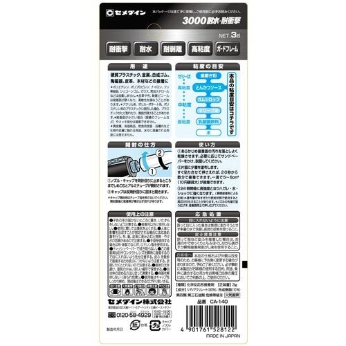 高粘度で垂れにくいです。(とんかつソースくらいの粘度)ピンなし開封可能な商品です。くり返し使える液だれ防止ノズルです。陶磁器、工芸品、玩具、釣り具などの接着に。 |