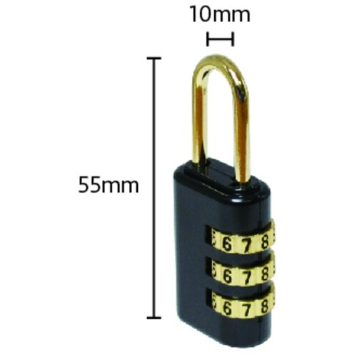 自分の好きな番号に設定できる3桁のダイヤル式ロックです。本体はダイキャスト製で丈夫です。 |