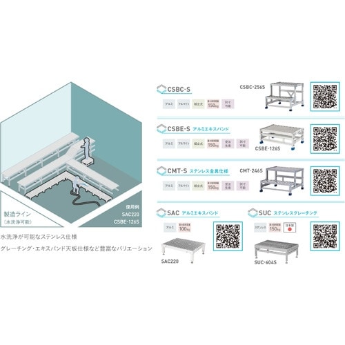 天板が縞板のため、従来品のアルミ形材に比べて滑り止め効果があります。オールアルマイト仕上げです。 |