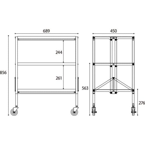 折りたたみできる三段式ワゴン。配膳ワゴンやビュッフェ台としても利用でき、二段目にお皿やカトラリーを置いたりと豊富なスペースを持った製品です。 |
