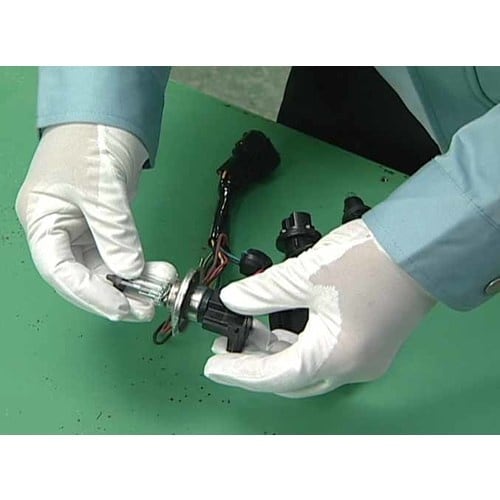 一般的なウレタン背抜きと比べて発じんが少ない手袋です。コーティングの樹脂密度が高く、表面が平滑なため、汚れがつきにくく落ちやすいです。イオンコンタミネーション(イオン性不純物)の少ない手袋です。 |