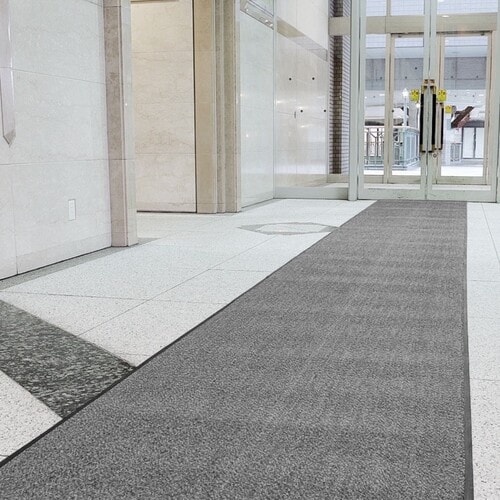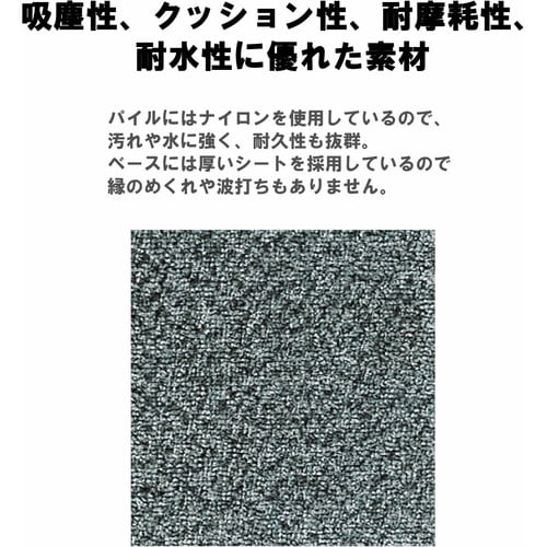 吸じん性、クッション性、耐摩耗性、耐水性と、インドアマットに求められるすべての機能をクリアしています。防炎適合品です。防炎性能登録番号(EO790117)※R5GY色です。玄関用泥落しマット。 |