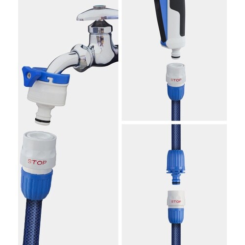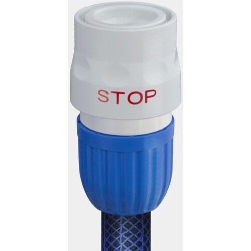 ニップルとの組み合わせで耐圧ホースをつなぎます。ニップルに接続すれば通水、外せば止水します。
