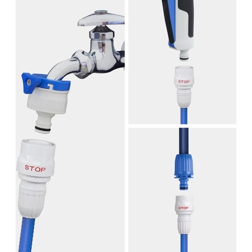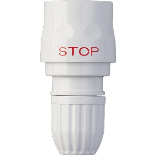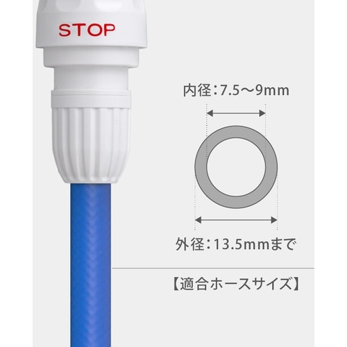 ニップルとの組み合わせで耐圧ホースをつなぎます。ニップルに接続すれば通水、外せば止水します。 |