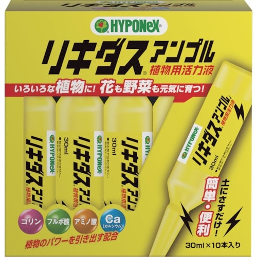 アンプルタイプの植物活力液です。コリン、フルボ酸、アミノ酸、カルシウムなどミネラル配合しています。水で薄める手間がなく室内でも簡単に使用できます。植物の植え替え時の活着促進に。 |