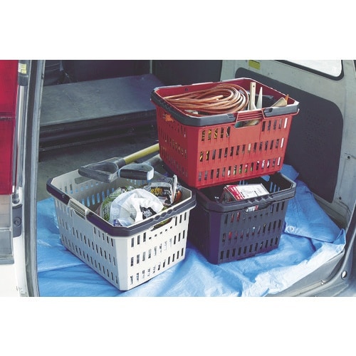 かさばる工具をまとめて持ち運べるバスケットです。積み重ねて使用できるので狭い作業スペースでも邪魔になりません。ジグザグハンドルで、持ち運びも楽々です。 |