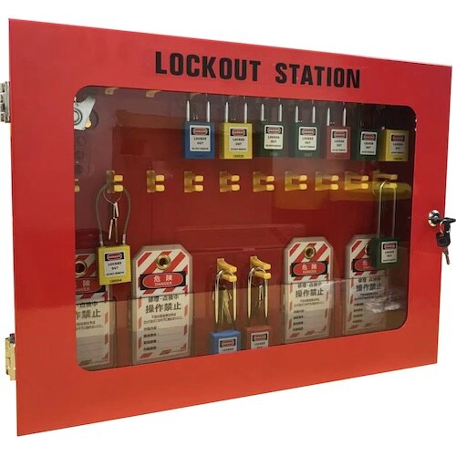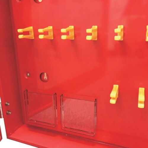 ロックアウト用パドロックと吊タグを一括管理できます。透明板で中身が見えて便利です。壁などに取り付けてご使用ください。ロックアウト用パドロックと吊タグの管理に。 |