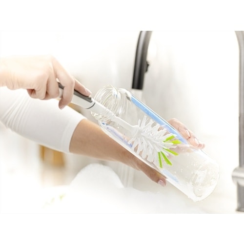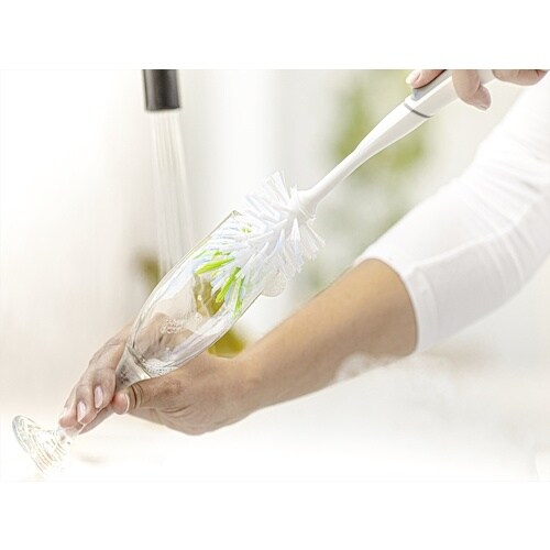 プラスチックボトルや深めのグラス、哺乳瓶(ガラス製のみ)などの洗浄に使えます。汚れをしっかり落とします。握りやすく濡れても滑りにくいハンドルです。抗菌加工ブラシ仕様です。 |