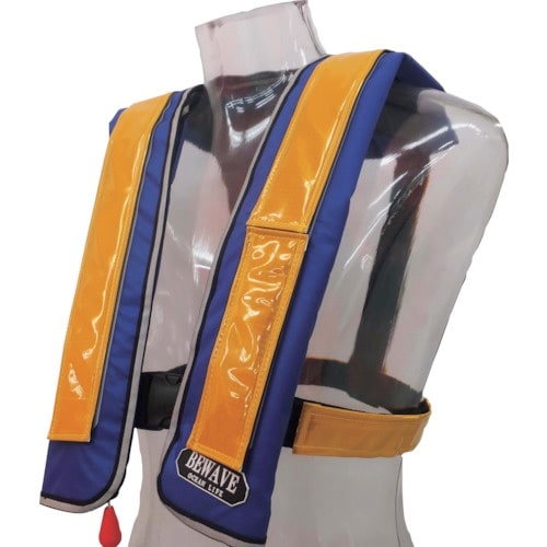 水を感知し、自動膨張する補助機能付タイプです。視認性を向上させる再帰反射材付です。小型船舶用法定備品として。海上工事等の水辺での作業用に。20t以上の大型船舶上での作業用に。 |