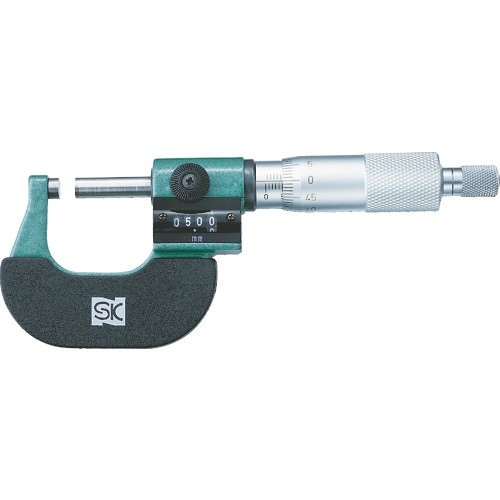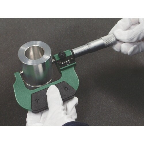 数値の見やすいカウント式です。測定面は超硬チップ付です。防熱カバー付です。フレームは塗装仕上げです。防熱カバー付です。フレームは塗装仕上です。外側寸法の測定に。 |