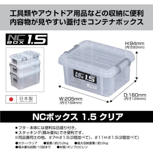 内容物が見えやすいナチュラルカラーです。スタッキングでき便利です。フタにcm単位の目盛り付です。部品やねじ、釘などの小物収納に。