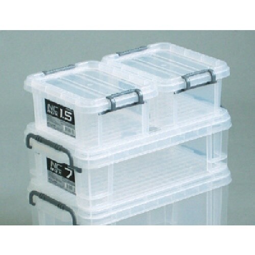 内容物が見えやすいナチュラルカラーです。スタッキングでき便利です。フタにcm単位の目盛り付です。部品やねじ、釘などの小物収納に。