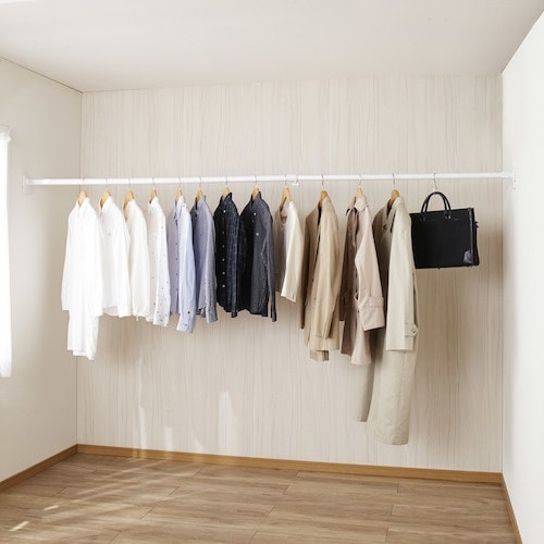 極太パイプφ34.0とφ29.6のパイプ+大きな台形キャップで安定度増強してます。釘・ビス不要 ジャッキとバネで圧着固定して取り付けられます。 |