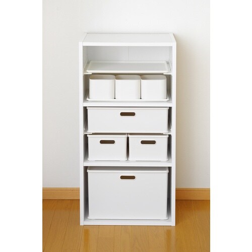 積み重ねても便利な収納ボックスです。すっきりとしたフォルムで、どんなお部屋にもなじみます。カラーボックスやパントリーの整理に。