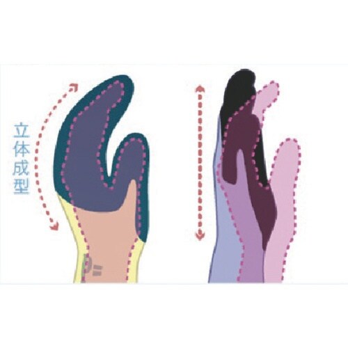 ゴム臭を抑えた特殊配合の樹脂を使用しています。格段の柔らかさと強力なすべり止め効果があります。抗菌防臭加工を施しているので、汗臭さ・細菌・カビを防ぎ、衛生的です。運送業、倉庫業、土木・建築作業。 |