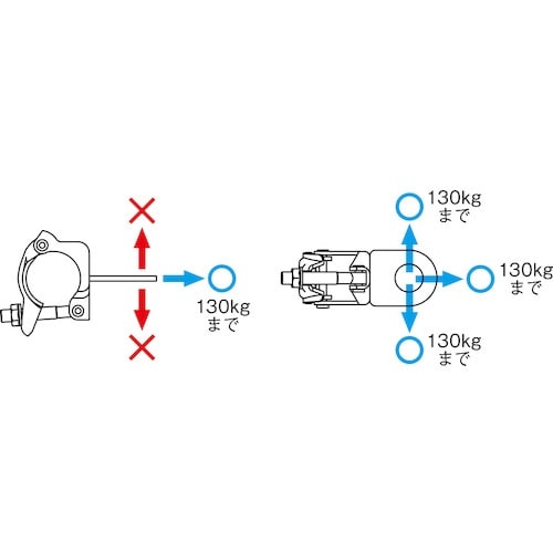 | 注意事項 | ※パイプの強度や支持点などをよく確認の上、ご使用ください。墜落制止用器具(安全帯)はショックアブソーバ付を使用してください。使用できる方向に制限があります。 |