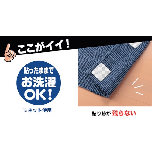 マットの裏に貼るだけの吸着タイプです。吸着面は、何度も貼ってはがせてのり跡が残りません。床暖房、ホットカーペットにも使用できます。貼ったままお洗濯ができます。屋内用。マットの裏面に貼ってすべり止めに。 |