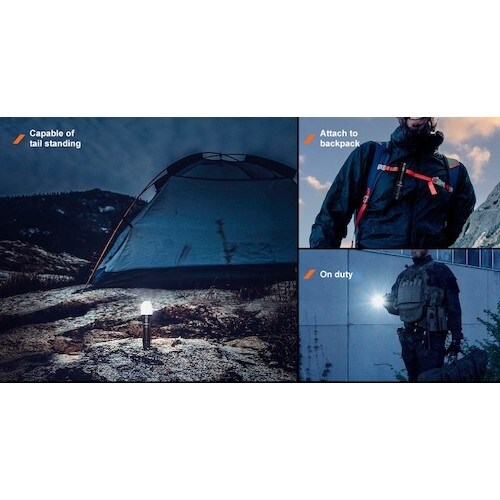 回転式切り替え機構で、片手で光を調節可能です。特許取得済みの3光源TIRレンズ技術により、コンパクトな形状でありながら、多目的な3色照射(白・赤・緑)が可能です。 |